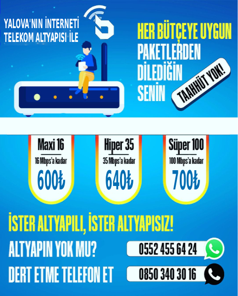 Yalova internet, konu özellikle bu hizmet olduğunda işinizi en doğru şekliyle yerine getirmek için tüm imkanlarını kullanacaktır. Profesyonel ve vakitli bir biçimde, en doğru uygulamalara başvurarak her detaydan memnun kalmanızı sağlayacağımızdan hiç şüpheniz olmasın.